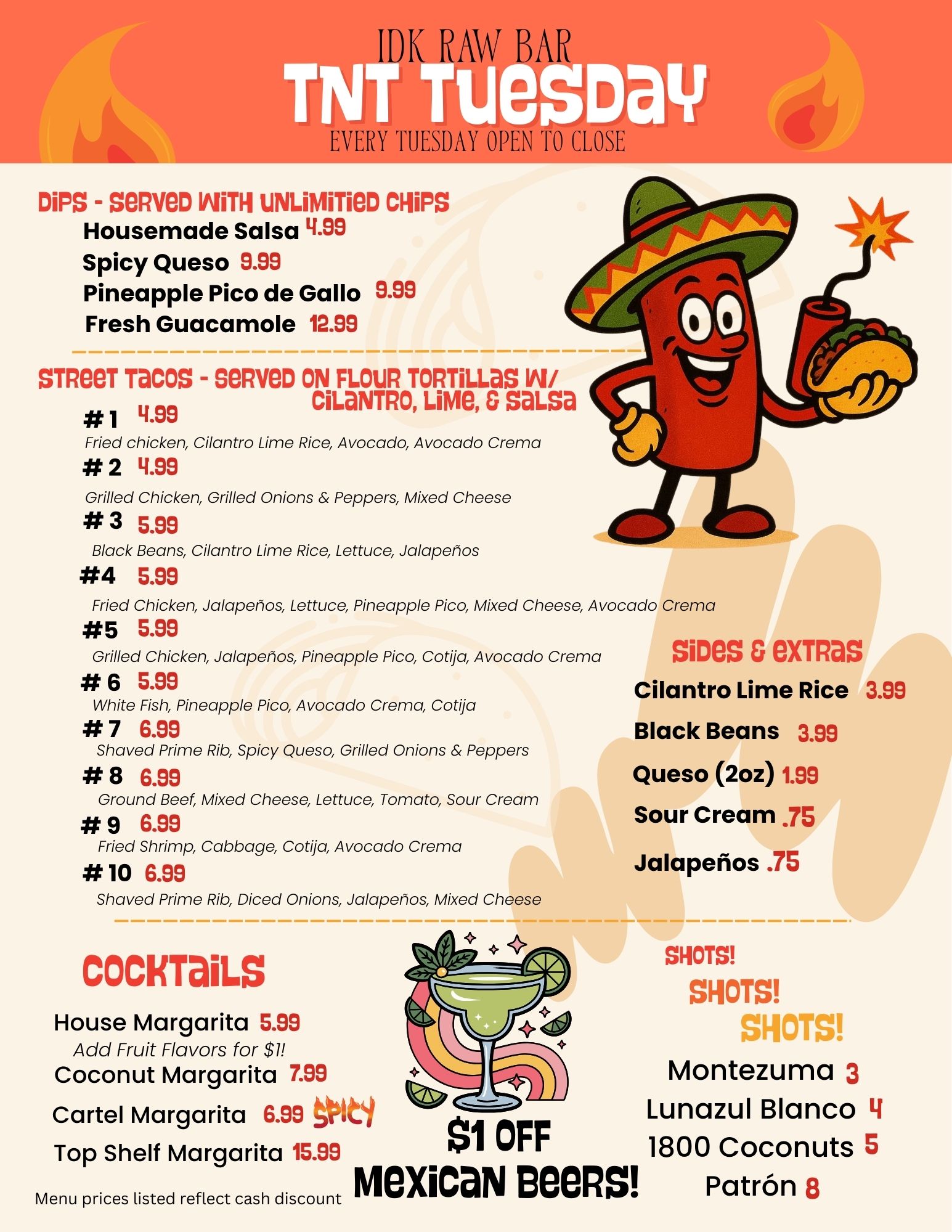 A la carte street tacos, great deals on tequila, and specialty margs!