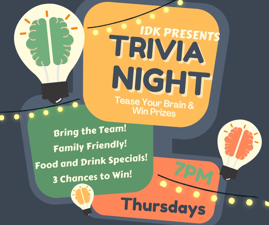 Every Thursday at 7pm! Fun and fast paced, with 3 chances to win! Plus several chance to spin our new wheel for EVEN MORE PRIZES!!